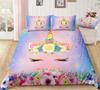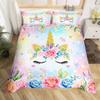 Cartoon Unicorn Duvet Cover Floral Rainbow Quilt Cover Microfiber 3D Girl's Eyelash Bedding Set Full For Kids Teen Kawaii Room