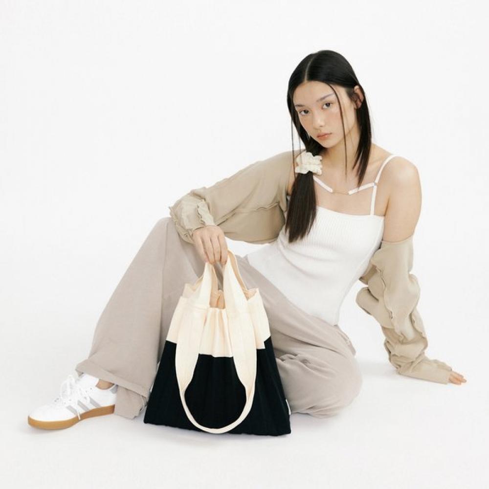 The Pleats Mama Two Way Shopper Bag in White and Black is a practical crossbody bag that can be used in two different ways. Its unique knit design and pleated details create a sense of style, crafted from environmentally conscious materials. This product is designed to be versatile for daily use.