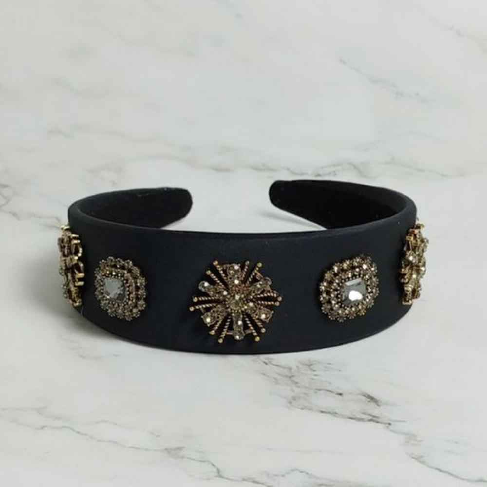 The LALA Black Antique Gem Hairband (LALAH627) is an antique-feeling headband usable throughout all four seasons. The combination of black stone and brass antique decorations makes it even more stylish and exudes a retro charm when worn. Meticulously crafted, this hairband is a perfect accessory for both special occasions and everyday use.