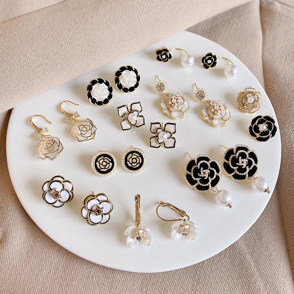 925 Silver Needle Camellia Pearl Earrings For Women Retro Simple Earrings Jewelry Accessories For Girls Gifts
