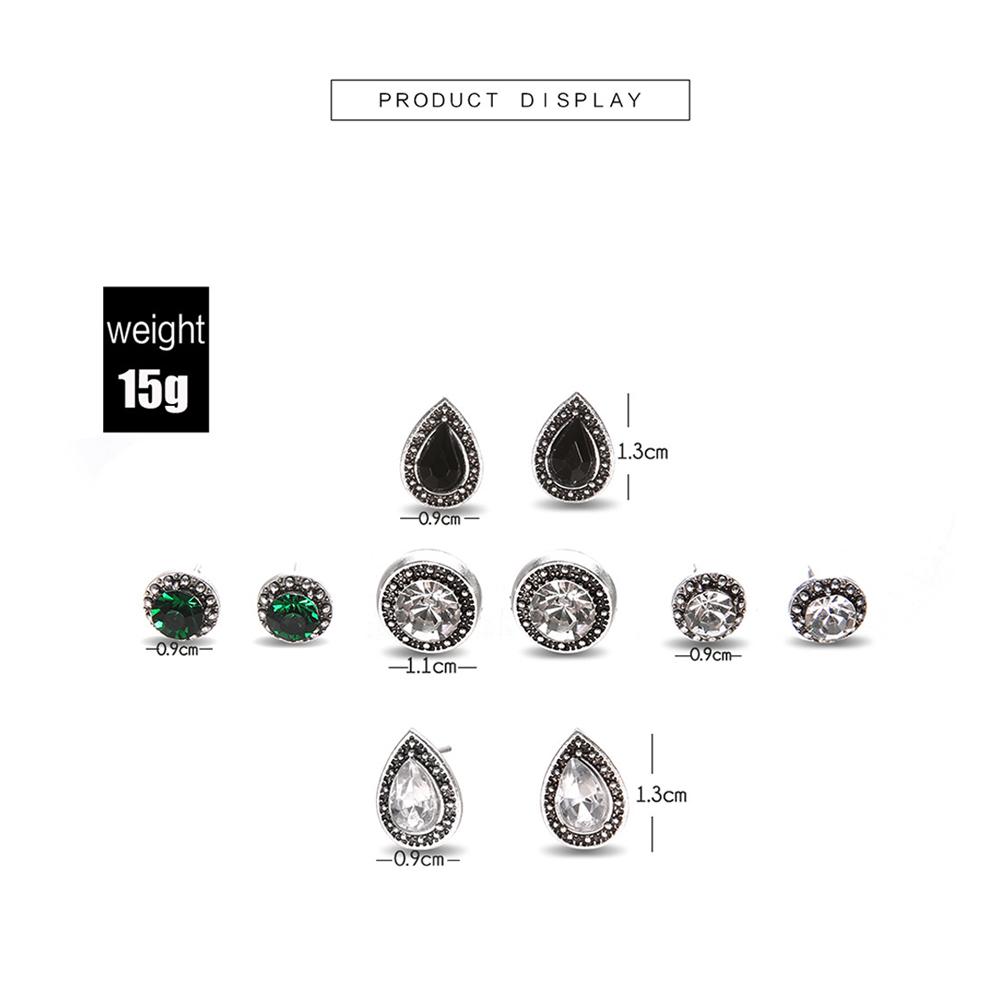 5 Pairs Retro Bohemia Style Earring Set Shimmer Crystal Ear Studs