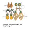 6Pairs/Set Alloy Jewelry Bohemian Vintage Style Ear Stud Pineapple Earring Set Flower Leaves