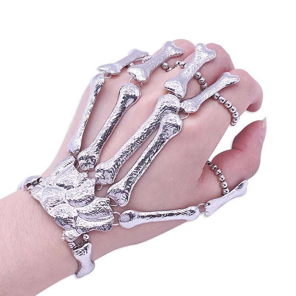 Unisex Elastic Metal Skeleton Linked Hand Chains Halloween Punk Style Bracelet Ornaments