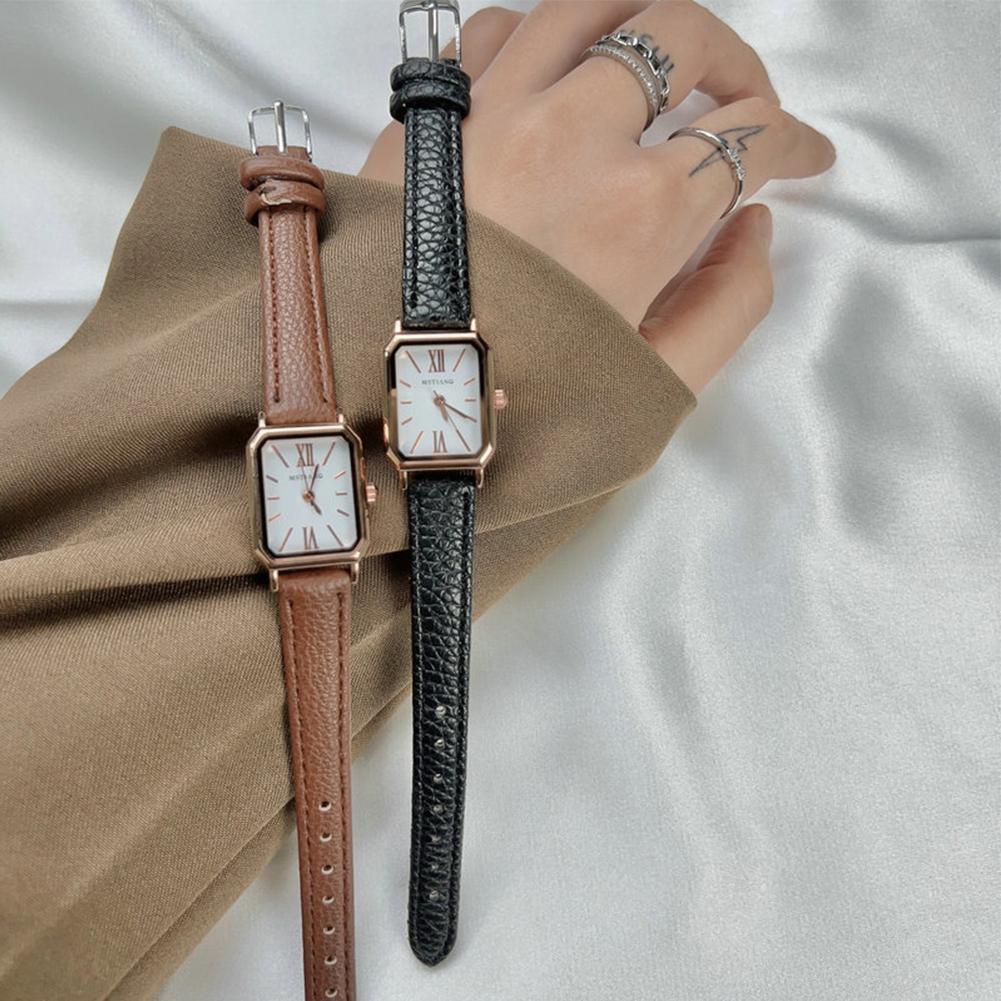 Retro Square Wrist Watch For Women Trendy Luxury Waterproof Watch With Pu Leather Band For Girls Student