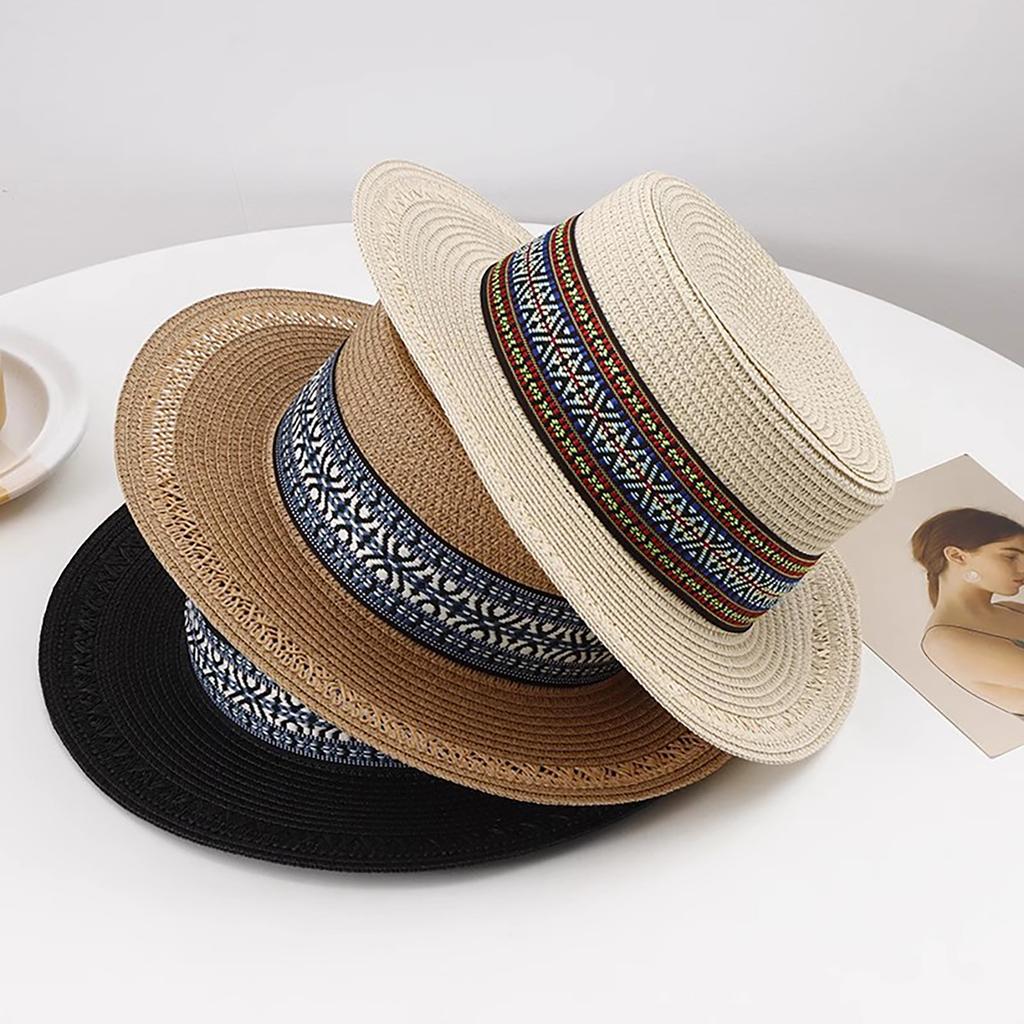 Sun Hat Sun Visor Hats Summer Hat Wide Brim Straw Boater Retro Pattern Outdoor Cap Flat Top Hat
