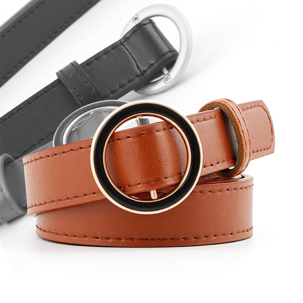 Women Fashion Casual Dark Circle Round Buckle Waist Belt