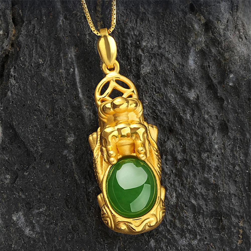 Feng Shui Pi Xiu Pendant Necklace Gold Inlaid Nephrite Pi Xiu Good Luck Auspicious Pendant For Men Women