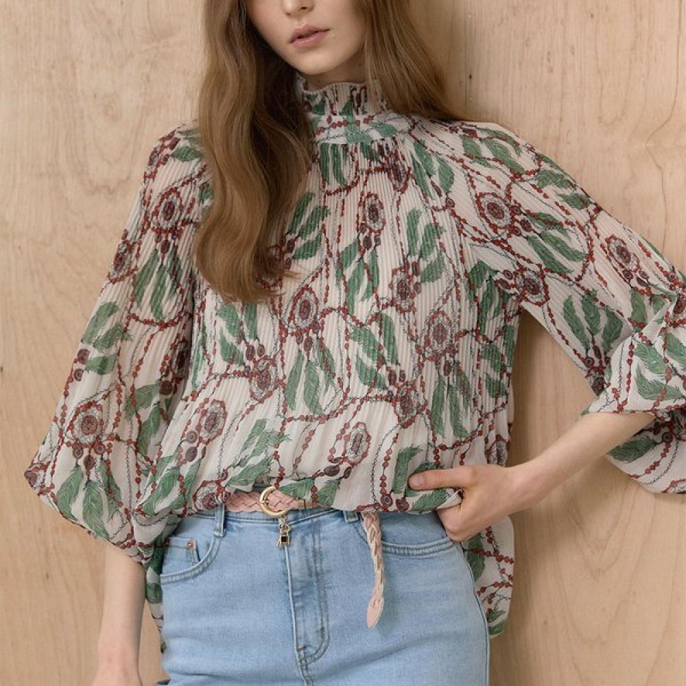MAXZA Dreamcatcher Print Pleats High Neck Chiffon Blouse Cc05qb600on