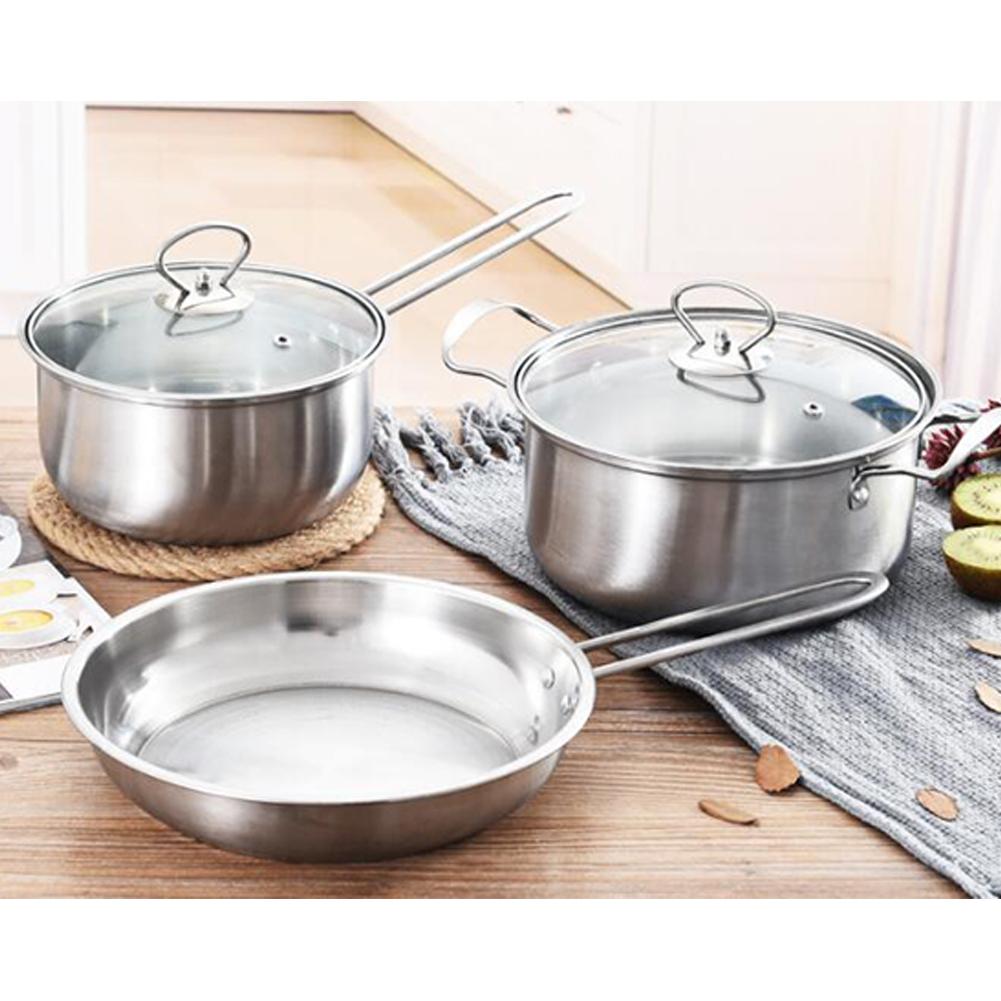 3pcs/Set Pot Stainless Steel Cookware of Frying Pan Milk Pot and Soup Pot Kitchen Utensil