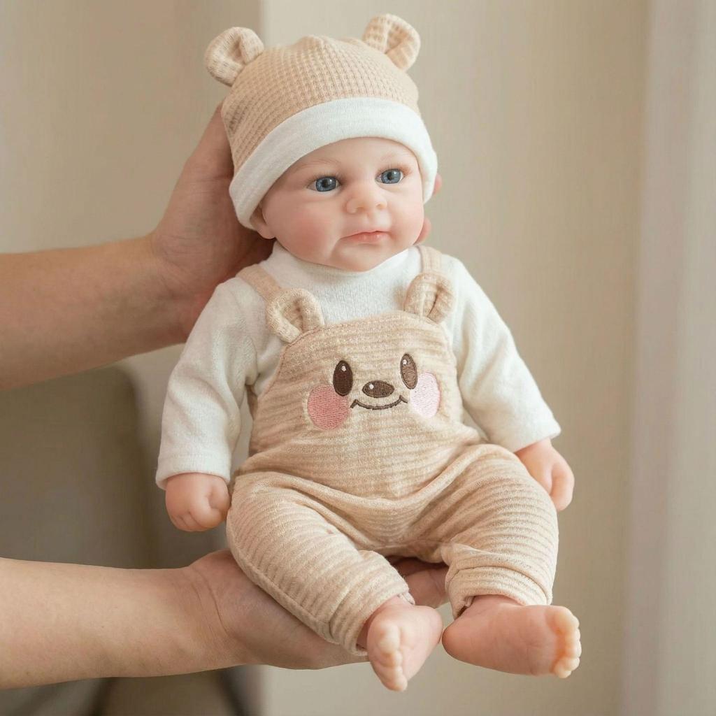 12-inch Light Teddy Bear Overalls Silicone Reborn Doll Gift for Kids - Christmas Gift