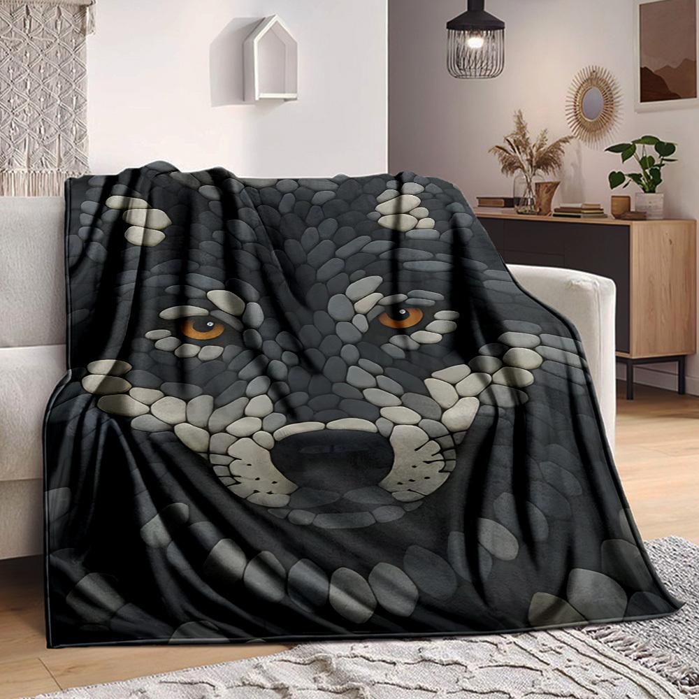1pc Wolf Stone Blanket, Lightweight Flannel Throw Blanket For Sofa, Bed, Travel, Camping, Living Room, Office, Couch, Chair, And Bed