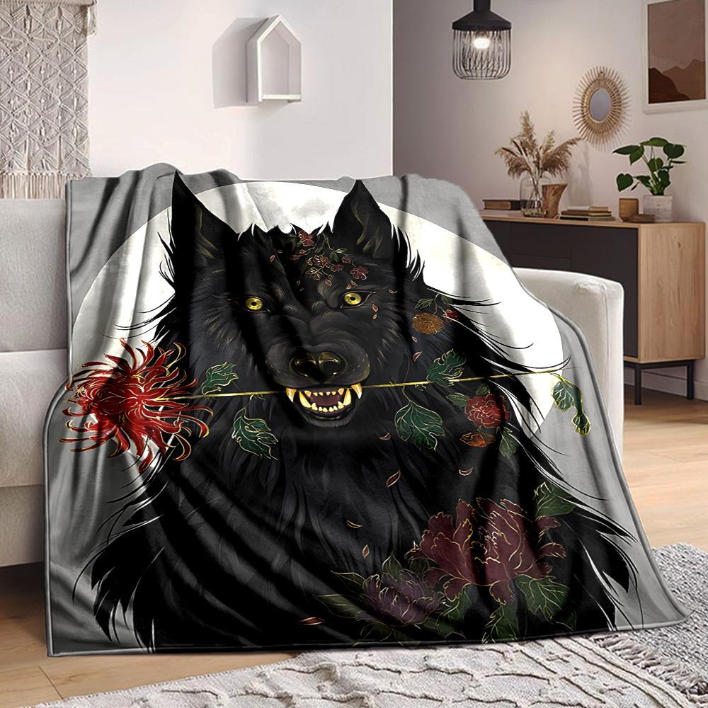 1pc Wolf Flowers Blanket, Lightweight Flannel Throw Blanket For Sofa, Bed, Travel, Camping, Living Room, Office, Couch, Chair, And Bed