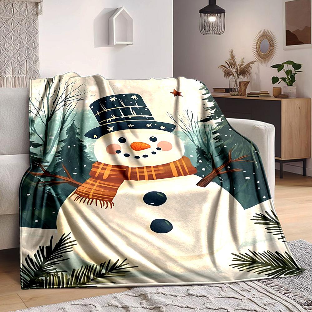 1pc Winter Snowman Blanket, Lightweight Flannel Throw Blanket for Sofa, Bed, Travel, Camping, Living Room, Office, Couch, Chair, and Bed