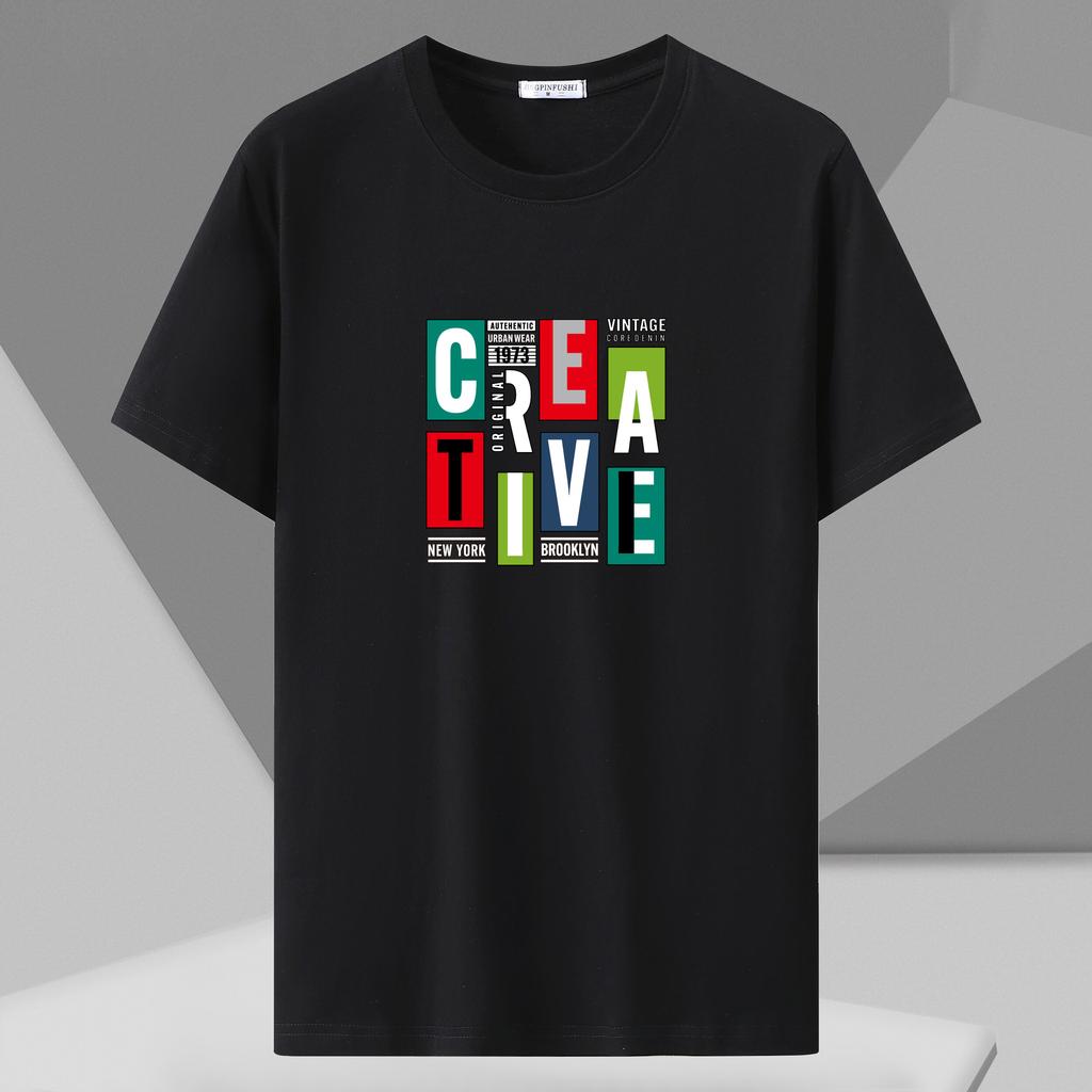 Casual Comfort Fit Pure Cotton T-Shirt With Graphic Print Summer Loose Size Graphic Printed Slim Fit Casual Sports Round Neck Short Sleeved T-shirts