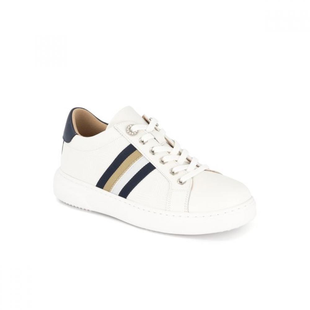 The women's banding sneakers APS201 KA30 have a heel height of 3CM and feature diagonal detailing for a chic look. They are ideal for casual wear and are easy to put on and take off, thanks to the banding design.