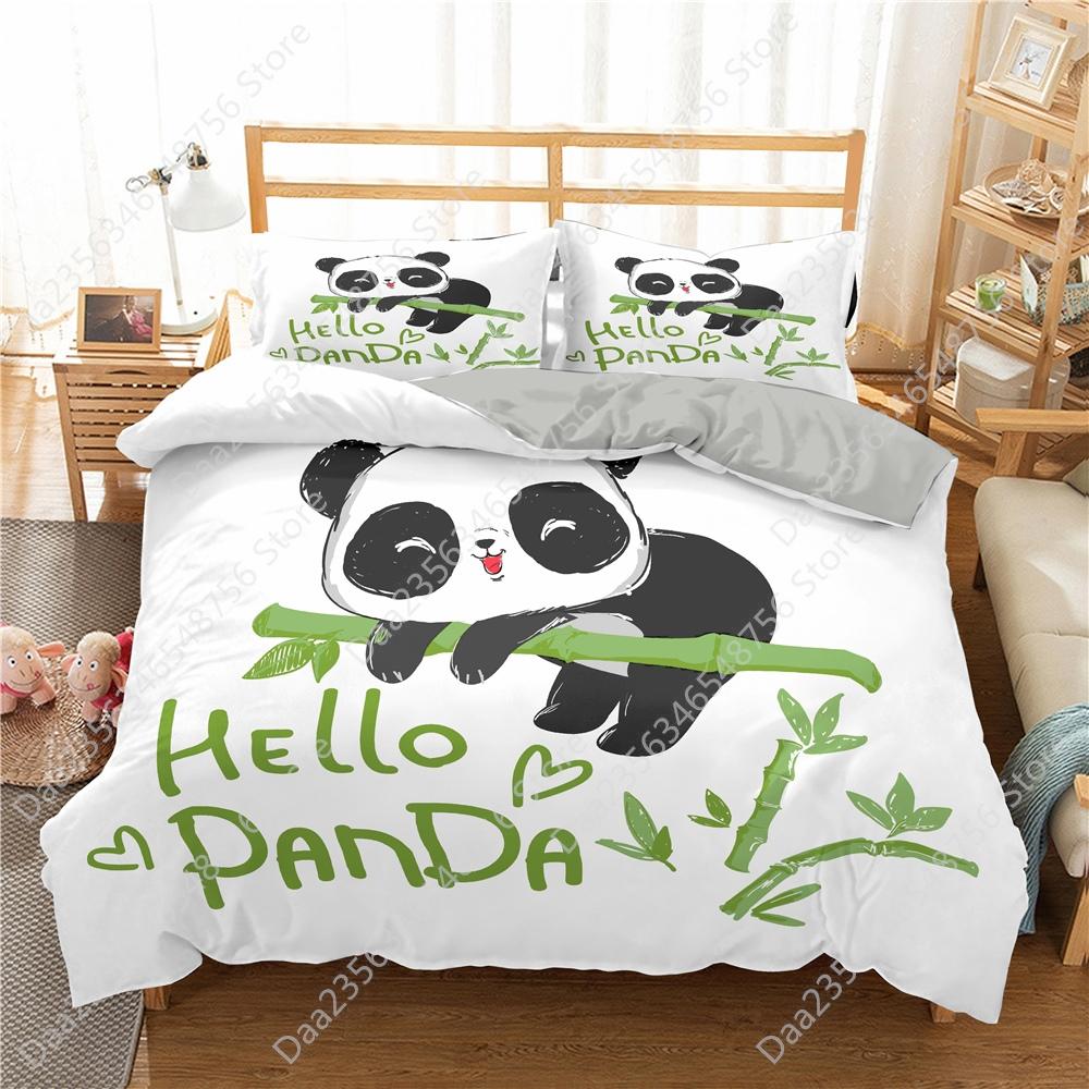 New Panda Bedding Set Single Twin Full Queen King Size Cartoon Animals Bed Set Aldult Kid Bedroom Duvetcover Sets 3D Anime 043