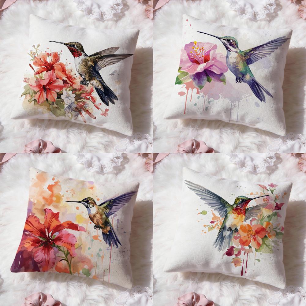 Hummingbird Spring Flowers Cushion Cover Premium Comfort Reversible Pillow Cove -Two In One Design for Any Room & Car Interior