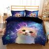 Galaxy Cat Kids Quilt/Duvet Cover With Pillocases Cartoon Animal Comforter Cover Bedding Set Star Sky Pet Child Bed Cover Sets