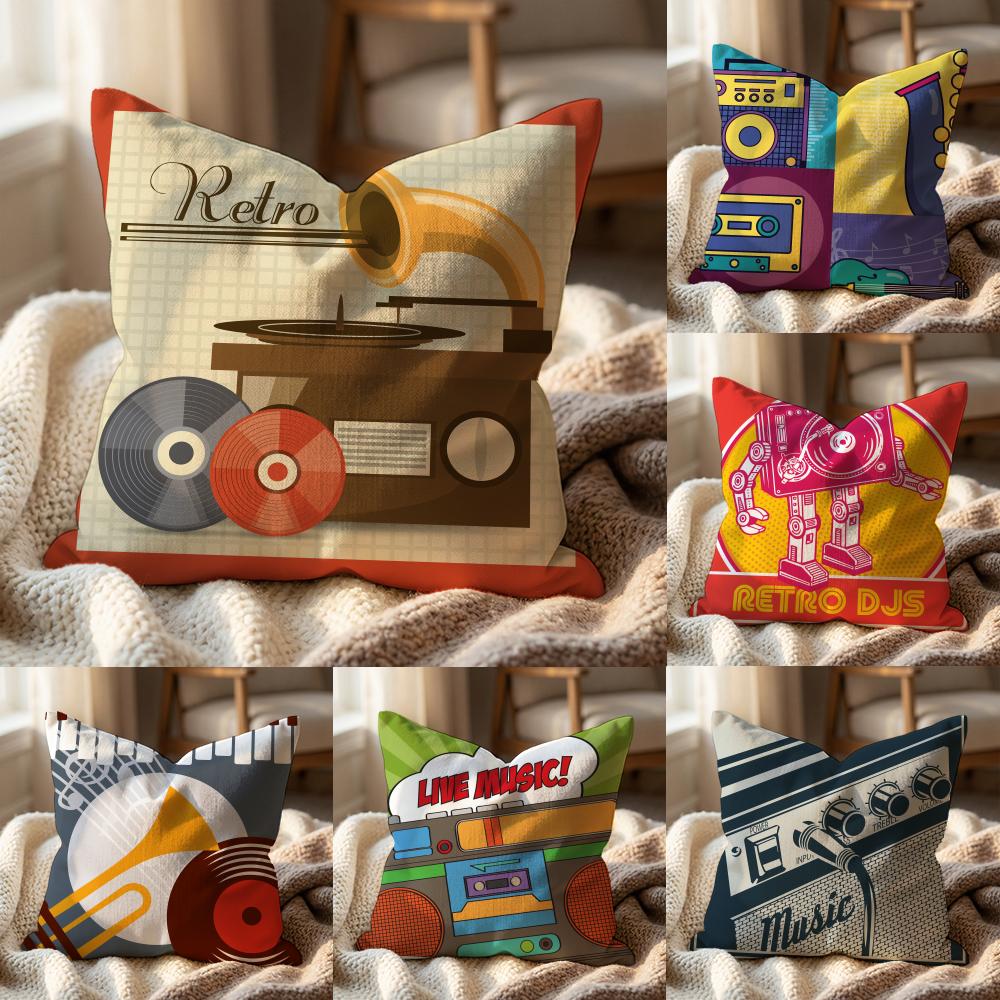 Retro Speaker Piano Rock Cushion Cover Multi-Scene Pillow Cover for Home & Car - Reversible, Soft & Durable for Daily Use