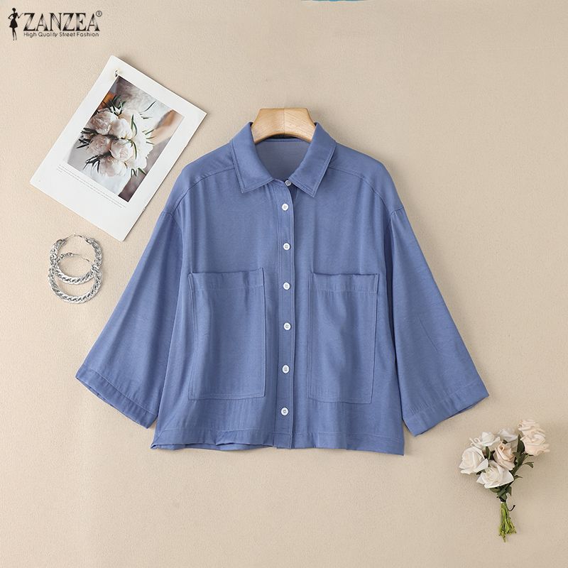 ZANZEA Women Casual Turn Down Collar 3/4 Sleeve Loose Blouse