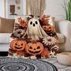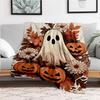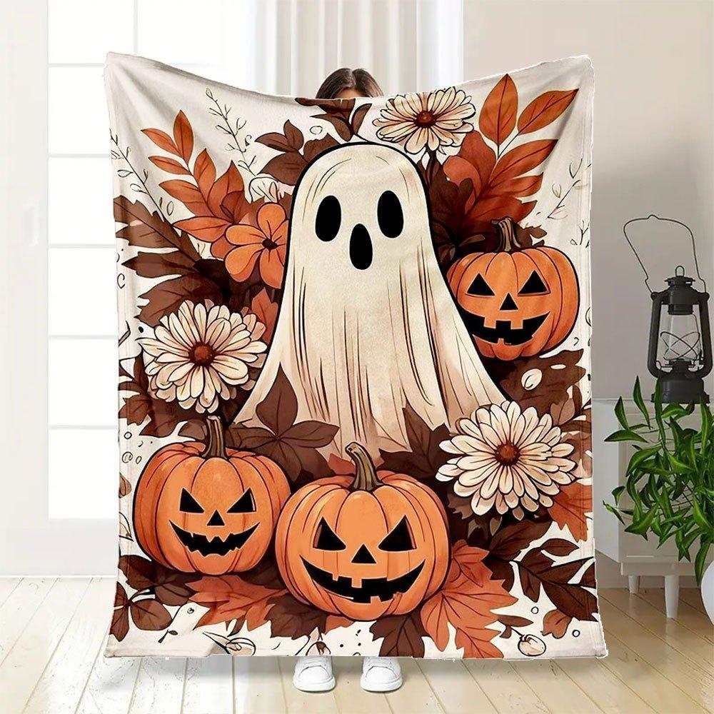 Halloween Ghost and Pumpkins Illustration PrintBlanket Flannel Throw Blanket for Sofa, Bed, Travel, Camping, Office, Couch, Chair