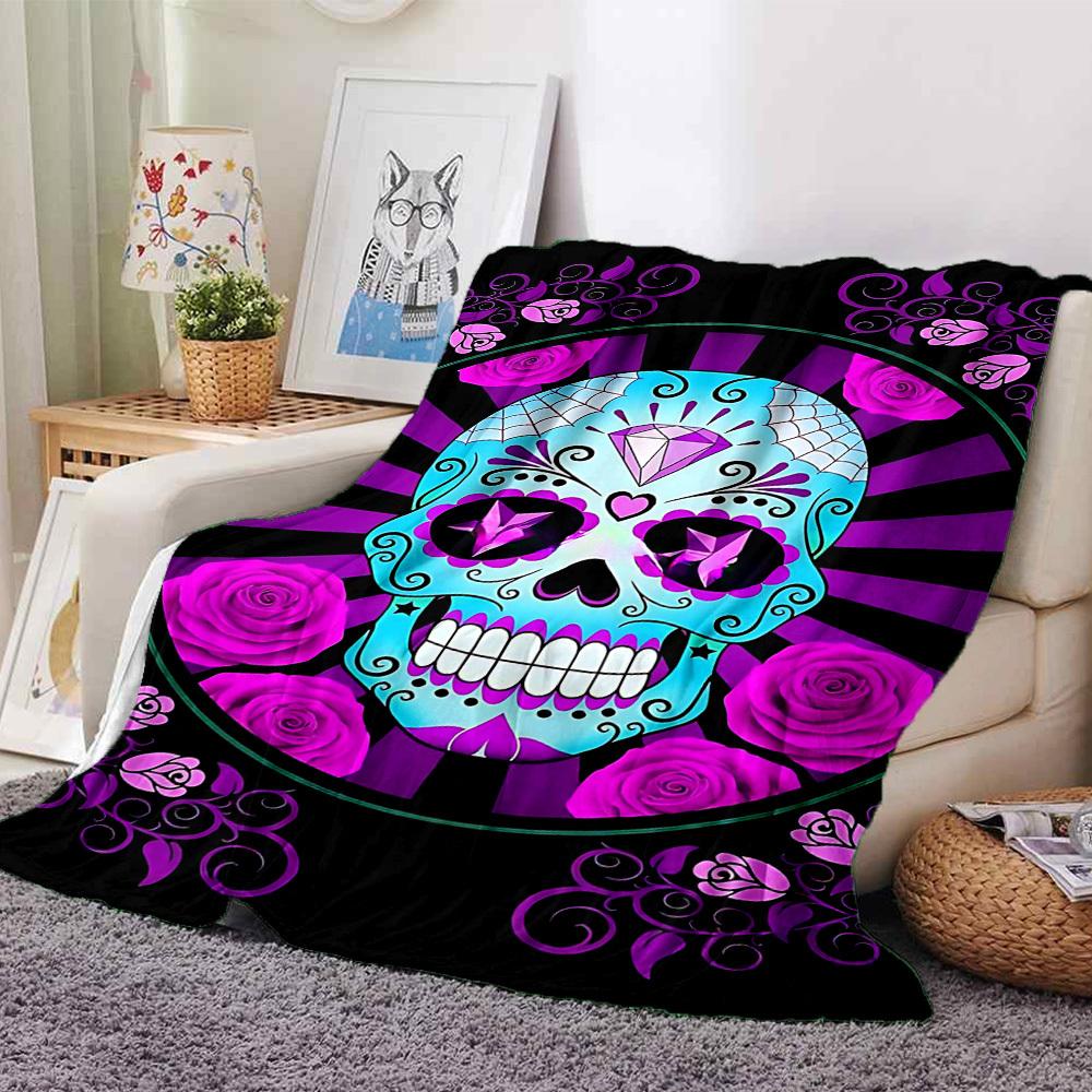 1pc Sugar Skull Roses Throw Blanket Soft Flannel, Cozy All Season Polyester Perfect for Home, Office