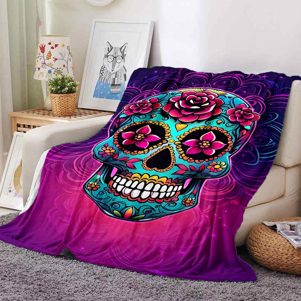 1pc Sugar Skull Throw Blanket Soft Flannel, Cozy All Season Polyester Perfect for Home, Office