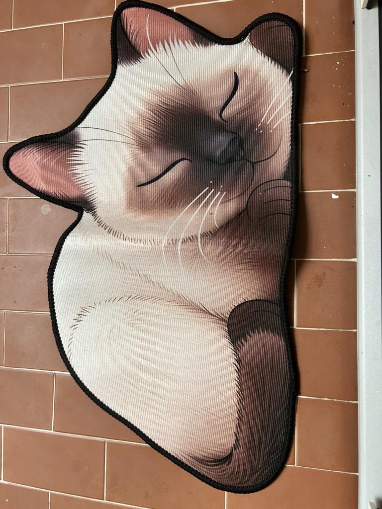 Shaped Cat Mat (40x60 cm) 🐈⬛✨ I wanted to add a touch of originality to my home and this cat-shaped mat turned out to be the perfect choice. It's not just a cute decorative item, but a product that shines for its build quality.. Design and Finishes The first thing that catches the eye is the precision of the shape: the cat's profile is cut with extreme care, and the finishes on the edges are really well done, without loose threads or imperfections. With its dimensions of 40 x 60 cm, it fits perfectly in front of a room door, in the bathroom, or next to the bed, immediately becoming the focal point of the room.. Safety and Materials A fundamental aspect I was looking for was stability, and this mat does not disappoint. The underside is equipped with an effective non-slip coating that anchors it firmly to the floor. Even on the smoothest floors or in the presence of moisture, it stays perfectly still, preventing annoying slips or bunching up when walked on.. User experience The material is pleasant to the touch and seems very resistant to daily wear. It is easy to clean and holds its shape well even after several days of use. It is rare to find a product that combines such a "sweet" and fun design with such evident technical solidity.. In summary: Pro: Original shape, excellent non-slip, reinforced stitching. Cons: None found so far. Final judgment: If you are cat lovers or looking for an original and quality gift, do not hesitate. It is a super recommended purchase that combines the useful with the pleasant! Thank you Joom for the accurate shipping! 🌟🌟🌟🌟🌟