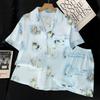 M: Length 64 cm, Bust 100 cm, Sleeve 17.5 cm, Shoulder 48.5 cm, Hips 100 cm, Pants Length 38 cm