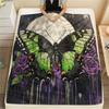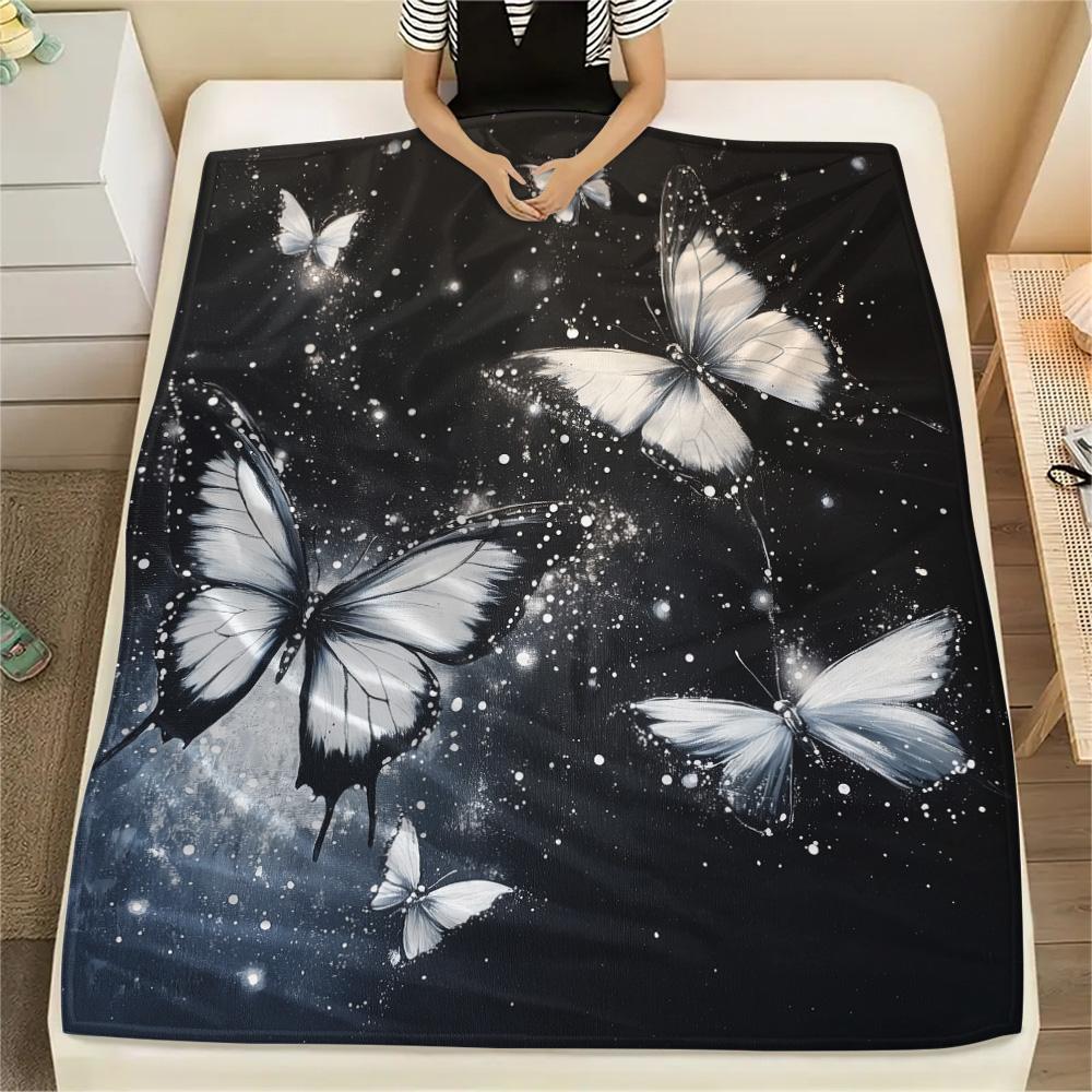 Dark Butterflies Print Flannel Blanket, High Quality Comfortable for All Seasons, Home Decor, Warmth and Comfort