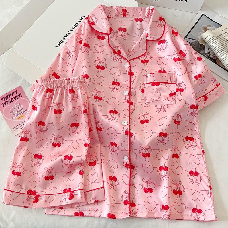 Love High-End Ice Silk Pajamas Women'S Summer Thin Short-Sleeved Sweet Loungewear Set