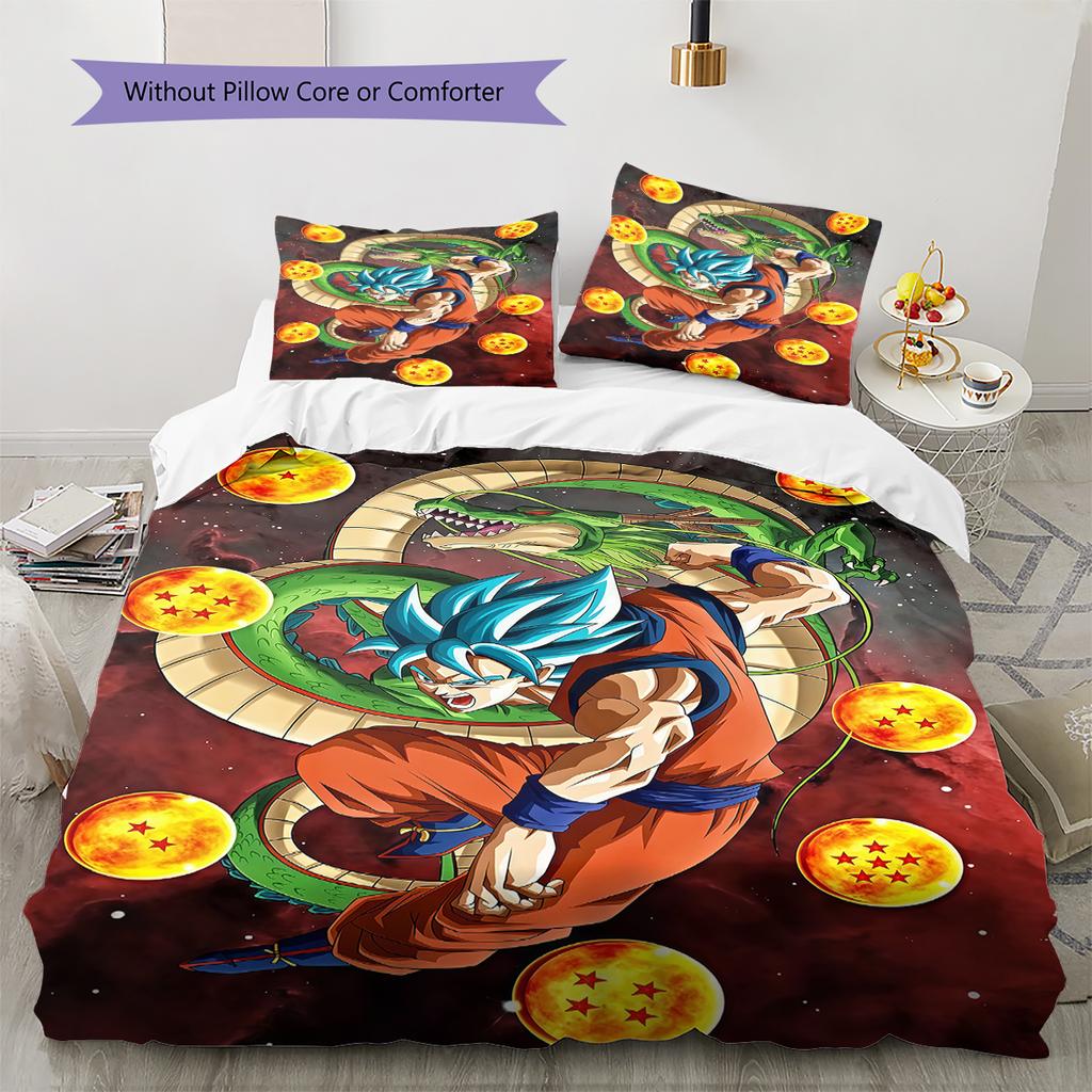 Son Goku Pattern Bedding,Quilt Set Quilt Cover Pillowcase Home Birthday Gift (1 * Duvet Cover + 2 * Pillowcase, Without Core)