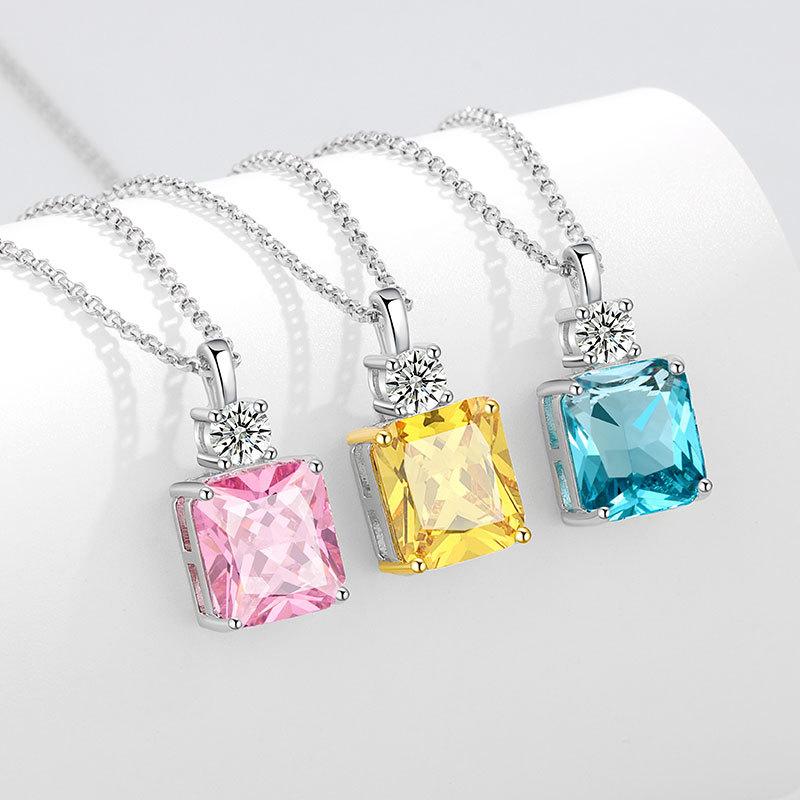 Ladies Elegant Square Zircon Pendant Necklaces