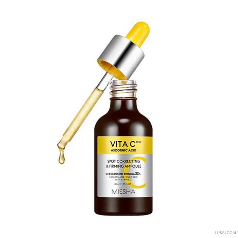 The Missha Vita C Plus Spot Correcting & Firming Ampoule is a high-performance functional ampoule that simultaneously targets dark spots and loss of skin elasticity. Featuring a stabilized Vita C Liposome Formula, it effectively delivers pure Vitamin C deep into the skin to improve the appearance of freckles, blemishes, and uneven skin tone while firming the facial contours (especially the "butterfly zone").