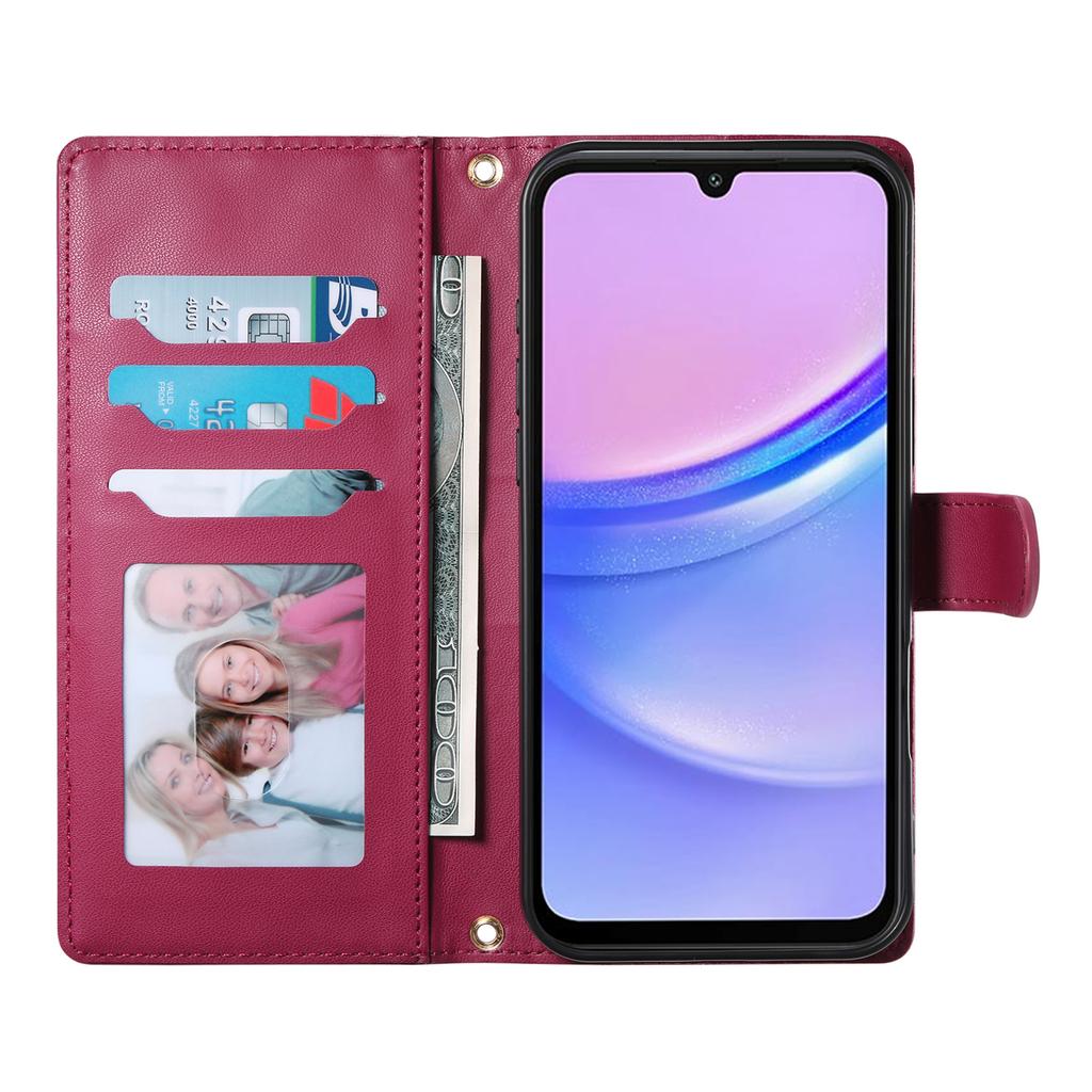 For Samsung Galaxy A15 5G/4G Case Rhombus Stitching Wallet Stand Leather Phone Cover with Long/Short Strap