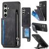 For Samsung Galaxy S24 FE Case Zipper Card Holder Kickstand Leather + PC + TPU Phone Cover