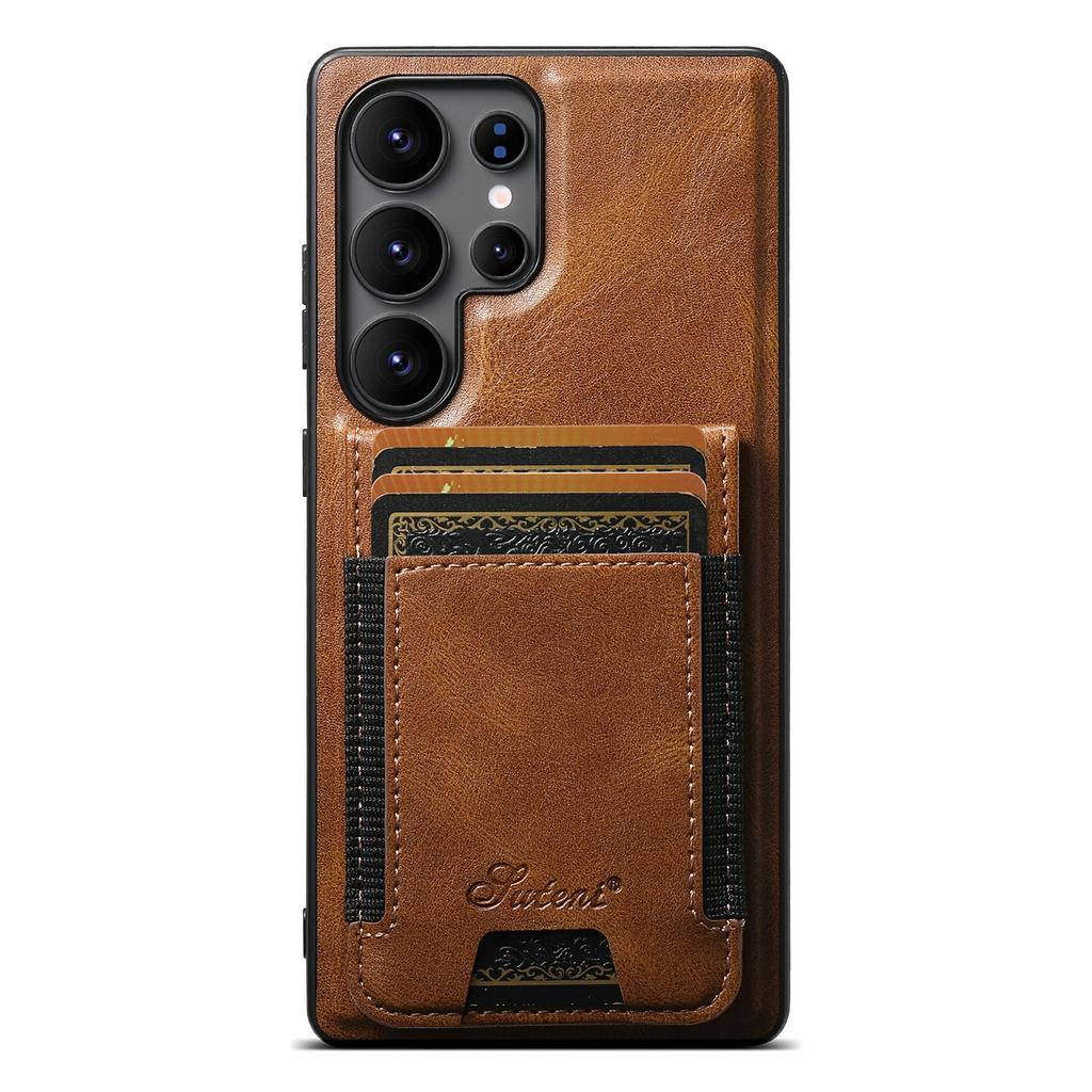 SUTENI H17 For Samsung Galaxy S25 Ultra Magnetic Case Card Slots Leather + TPU Kickstand Phone Cover