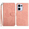 For Oppo Reno13 5G (Global) Case Butterfly Flower Imprinted Leather Phone Cover with Strap