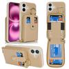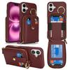 For iPhone 16 Case with Zipper Pouch/Ring Kickstand/Strap Litchi Texture PU + TPU Phone Cover