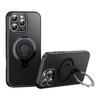 For iPhone 16 Pro Max Case Compatible with MagSafe Kickstand Carbon Fiber Texture PC + TPU Back Cover with Silicone Ring