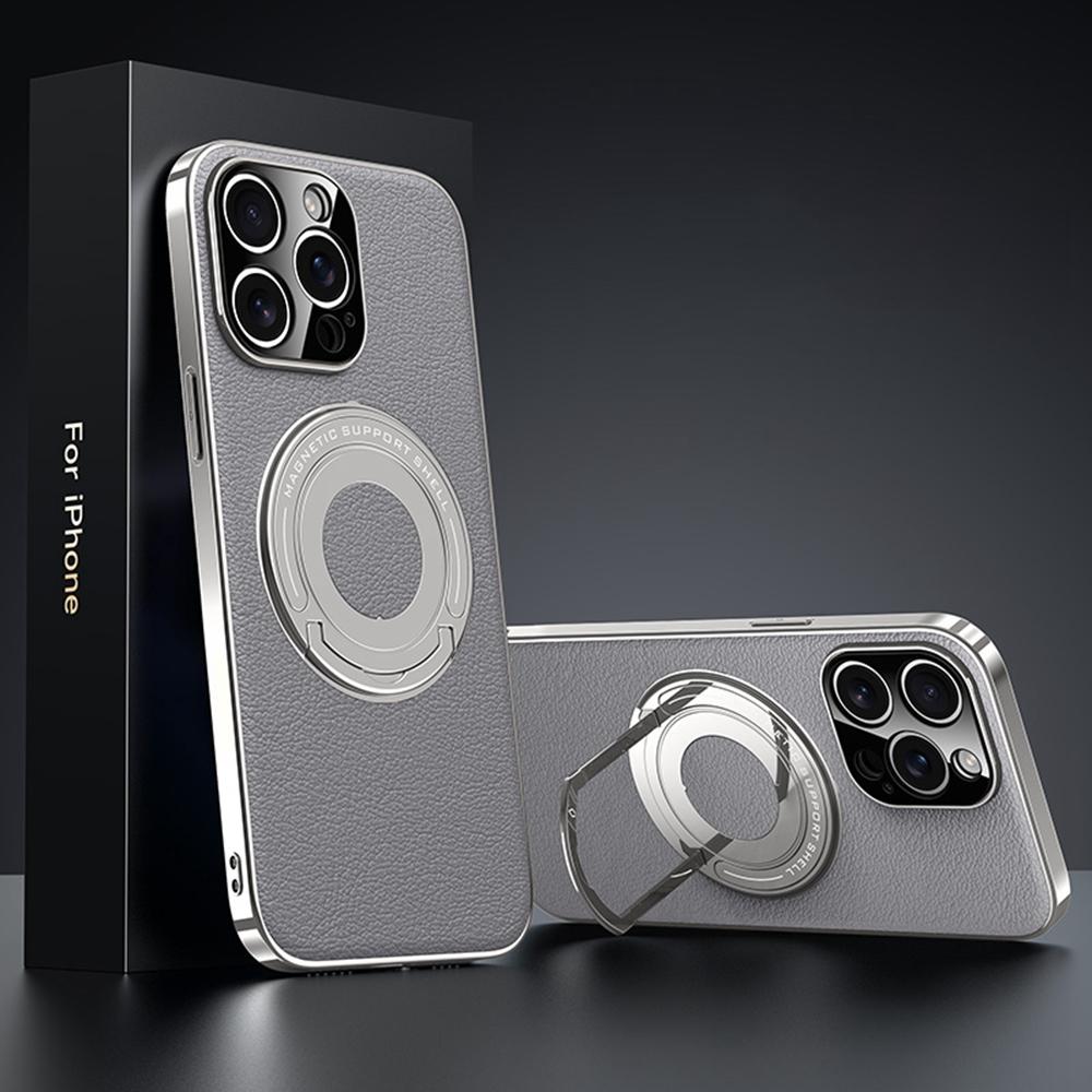 For iPhone 14 Pro Max Case Compatible with MagSafe Leather TPU Back Cover with Hidden Kickstand