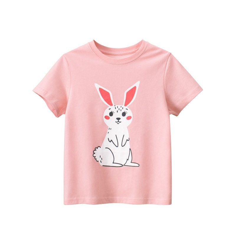 Clothing for Middle and Large Children 2026 Summer New Style Girls' Pure Cotton Cartoon Bunny Print Short-Sleeved T-Shirt Kidsren's Clothing