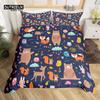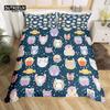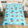 Kawaii Bear Duvet Cover Set Twin King Size Cartoon Animals Bedding Set Polyester Parachute Blue Sky White Cloud Comforter Cover
