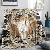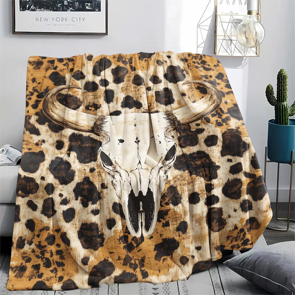 1Pc Western Cow Skull Print Flannel Blanket, High Quality Comfortable for All Seasons, Home Decor, Warmth and Comfort, Perfect for Christmas Gifts