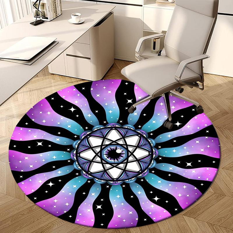 1pc Psychedelic Eye Mandala Round Carpet, Made of Polyester,Perfect for Decorating Office Chairs, Living Rooms,Vibrant Decorative Rug