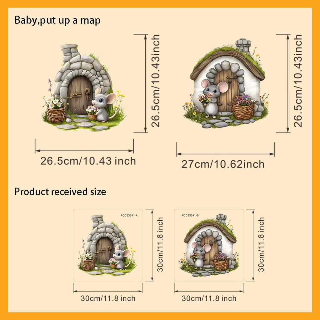 Hand-Painted Flowers & Mouse Hole Wall Stickers, Artistic Decals for Bedroom Living Room Entryway Decor, Self-Adhesive