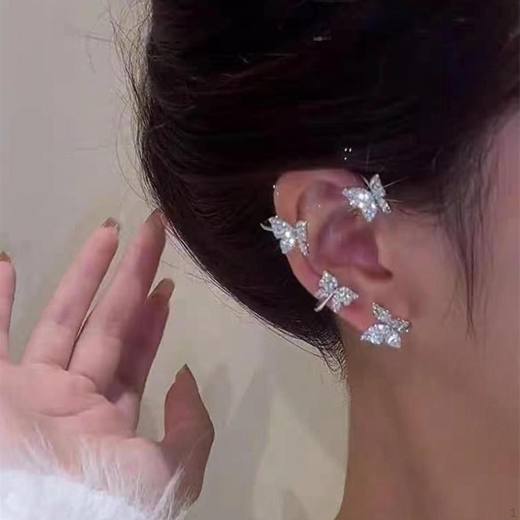 Cuff Earring Butterfly French Style Sparkling Ear Clip Metal Elegant Fashion for Girls Women