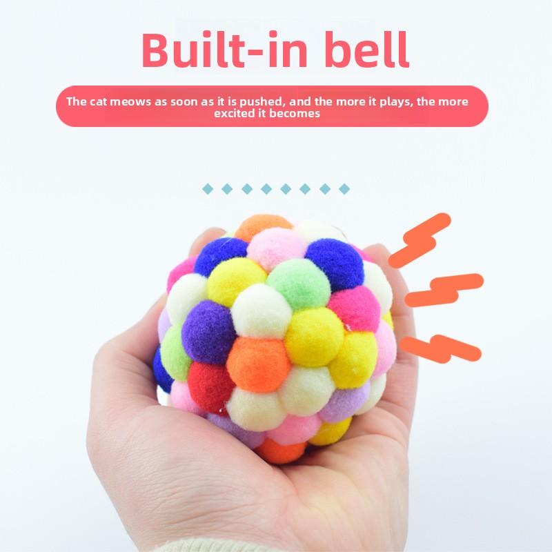 Colorful Plush Bell Ball Cat Toy - Fun and Scratchable Plush Balls for Solo Play with Cats.