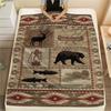 1Pc Cabin Bear Print Flannel Blanket, High Quality Comfortable for All Seasons, Home Decor, Warmth and Comfort, Perfect for Gifts