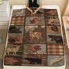 1Pc Cabin Wildlife Print Flannel Blanket, High Quality Comfortable for All Seasons, Home Decor, Warmth and Comfort, Perfect for Gifts